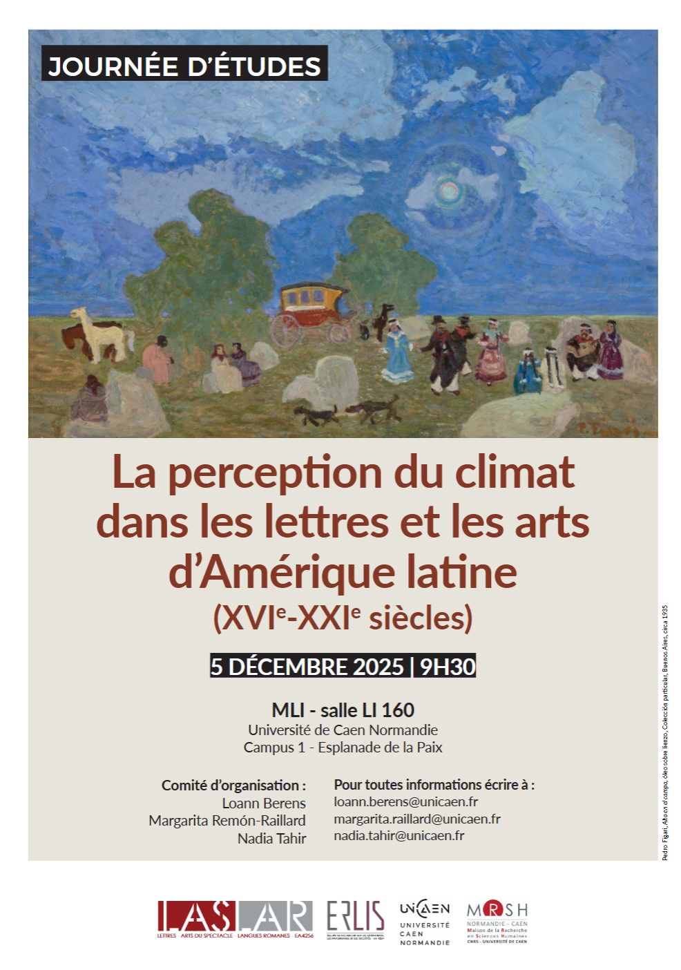 Lors de cette journée, on se proposera d’étudier une série de productions textuelles (littéraires ou non), iconographiques et filmiques afin d’explorer comment, depuis l’Amérique latine, leurs auteurs ont perçu le climat et le changement climatique à l’échelle locale, régionale ou globale au cours des cinq derniers siècles. En d’autres termes, il s’agira d’explorer sur la longue durée une série d’expériences subjectives face au climat et à son évolution pour saisir les enjeux, nécessairement (géo)politiques, associés à la question climatique en Amérique latine.