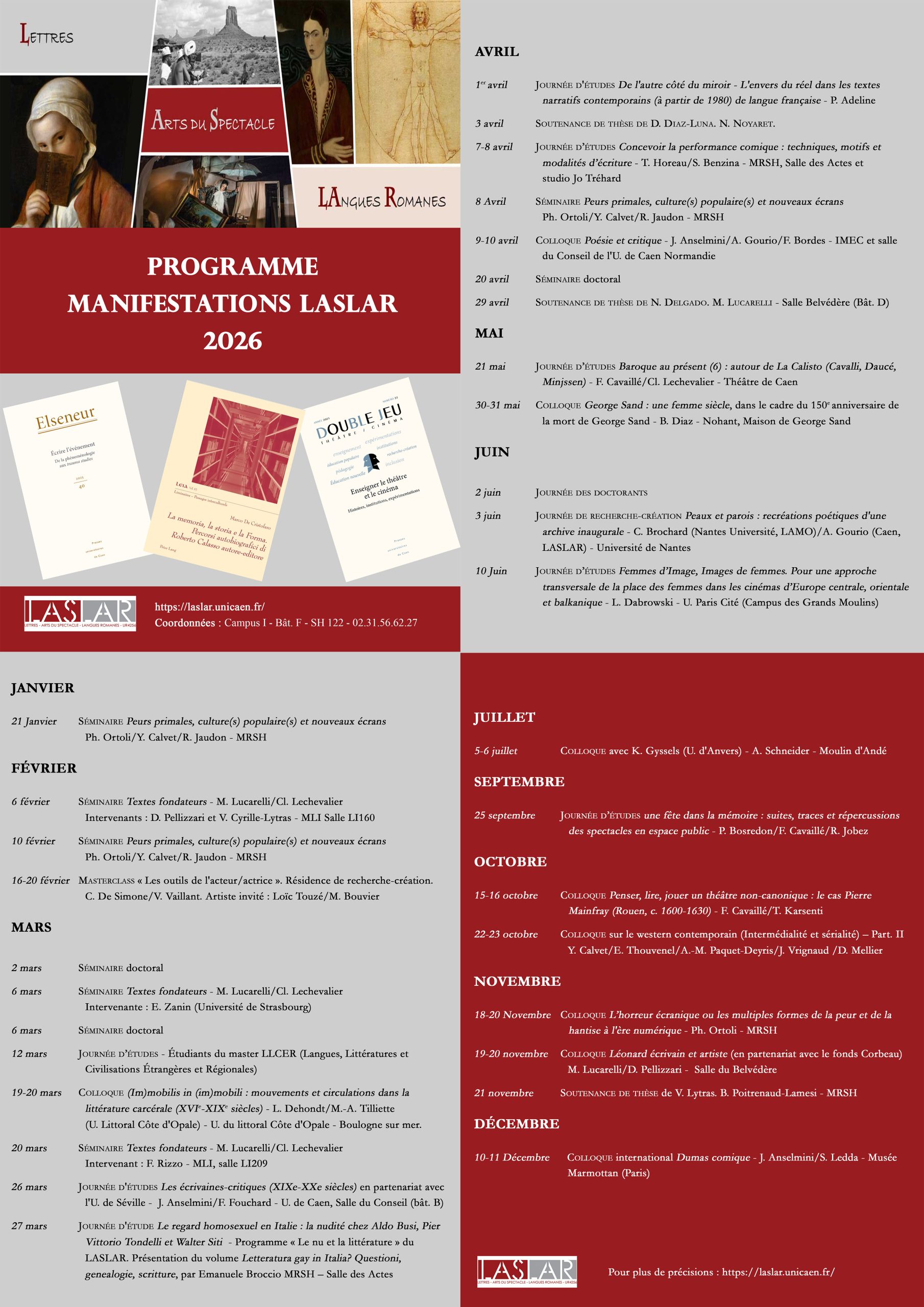 PROGRAMME Manifestations LASLAR 2026